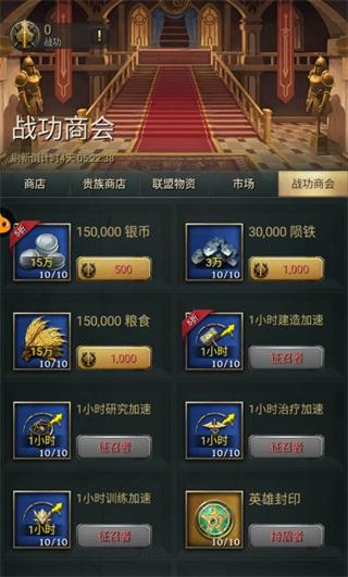 战功商城前往方式:点击联盟→联盟物资→战功商城