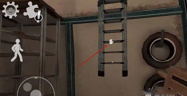 16、进入储藏室,在门旁边拿到梯子。