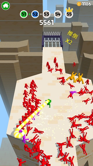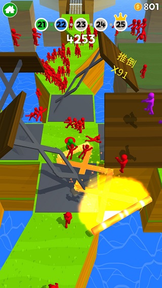 2、需要控制小人推木棍,向关卡末端推进,用你的棍子推开路上所有的敌人,将敌人通通推下水。