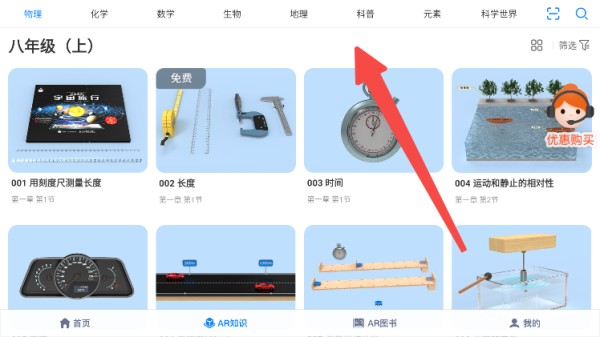 1、进入生动科学AR,点击下方进入“AR知识”板块;