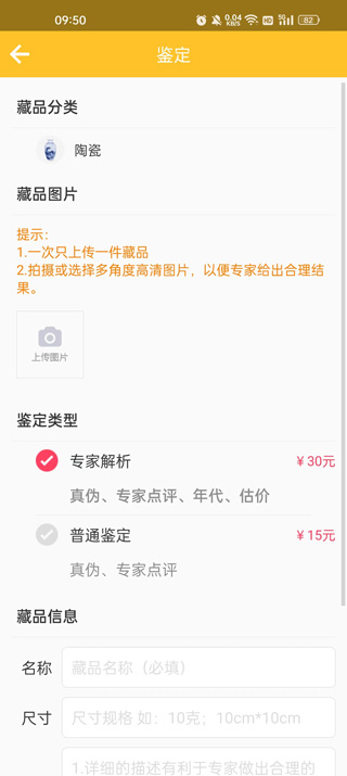手机拍摄藏品图片上传,既有专家在线鉴定30分钟内便知真假,也可向专家咨询藏品价值。