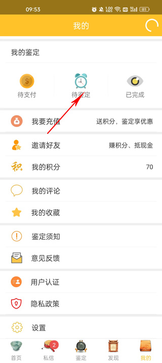5、最后点击进入我的页面,点击待鉴定查看最后的鉴定结果。