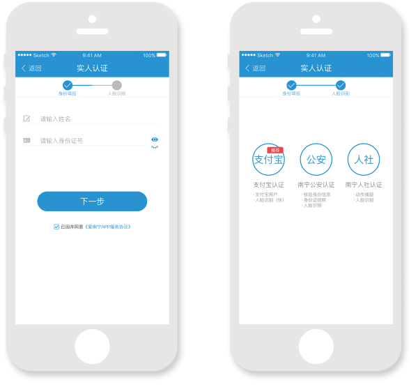 3、目前支持支付宝、公安、人社三种认证渠道;