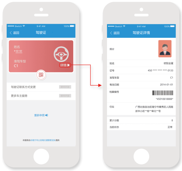 实体驾驶证的在线化,作为驾驶证原件的补充,为用户在应用场景中提供在线认证服务。