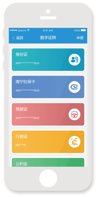 1、数字身份:数字身份证、电子社保卡、南宁公积金、驾驶证电子信息、行驶证电子信息、电动车电子信息、数据秘书、个人信用;