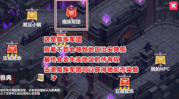 5、最后这个是魔族军团据点,放任不管会让这个地方治安降低,最后失去这个地方。