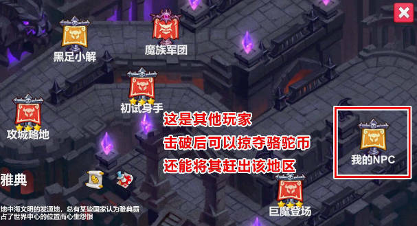 4、黄色据点是其他玩家的据点,击败后可以将其赶出这个据点。