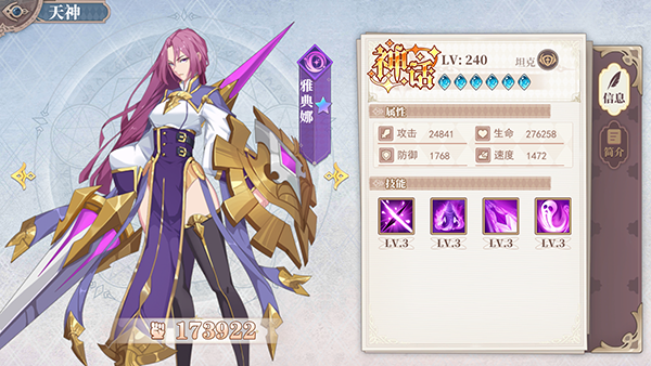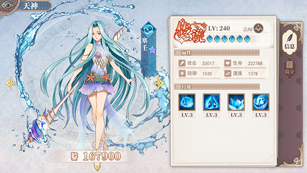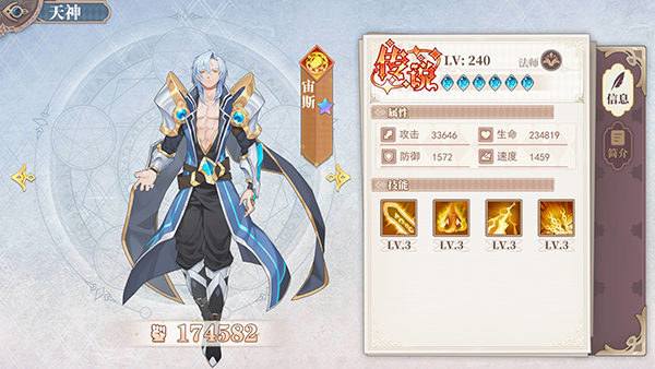 核心角色:宙斯(雷系输出)、迦楼罗(风系输出)、女娲(光系辅助)