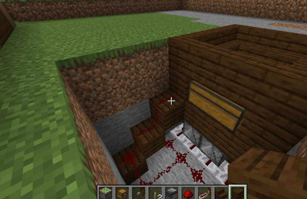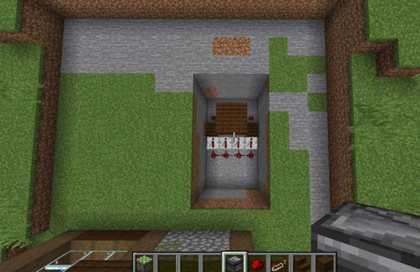 6、最后我们再铺放木板进行隐藏,再摆好1个按钮就做好我们的地板机关啦!