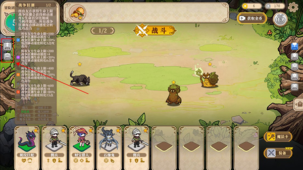 7、卡牌英雄之间拥有不同的羁绊效果,点击左侧界面即可查看详细属性,自由组合策略更胜一筹。