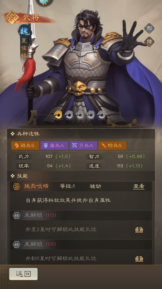 夏侯惇,字元让,沛国谯郡人,夏侯婴后代,曹操大将。少时以勇气闻名,随曹操证战多年,立下赫赫战功。兖州之战,伤左目仍奋勇。曹操平定河北,夏侯惇镇守后方。建安年间,随曹操征孙权、关羽。曹操死后,夏侯惇升大将军,不久因病去世。
