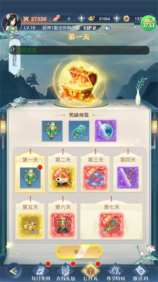 5、不要忘了领取七天在线奖励、每日签到和在线奖励。