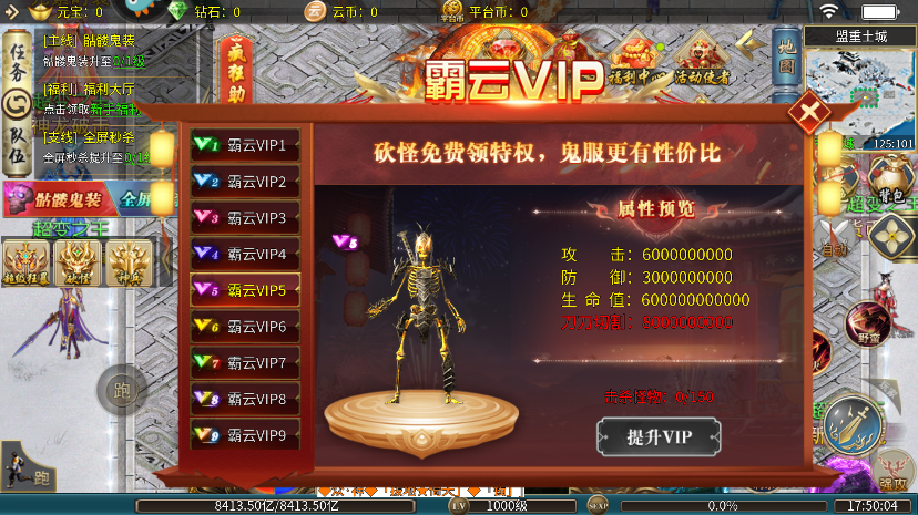 3、霸云VIP:砍怪时可以免费获取特权,鬼服享有更高性价比。