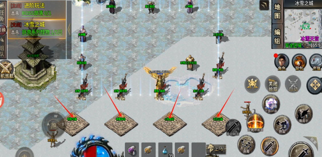 1、进游戏后跟着主线走开区一小时后下方四张地图(土城上方冰雪世界进入)必须要抢,必爆13阶剑甲成品鬼王、五阶特殊,骰王地图在拿完这一波资源以后再去打!!