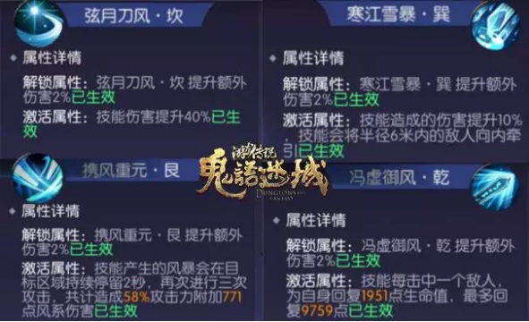 根据不同的角色及技能佩戴,搭配不同的鬼宠组合,对应相应的潜能搭配。