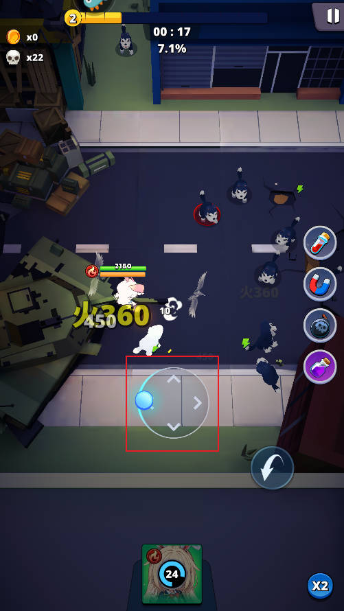 2、游戏中角色发现敌人会自动攻击,咱们只需要滑动屏幕控制角色移动即可,操作非常简单。