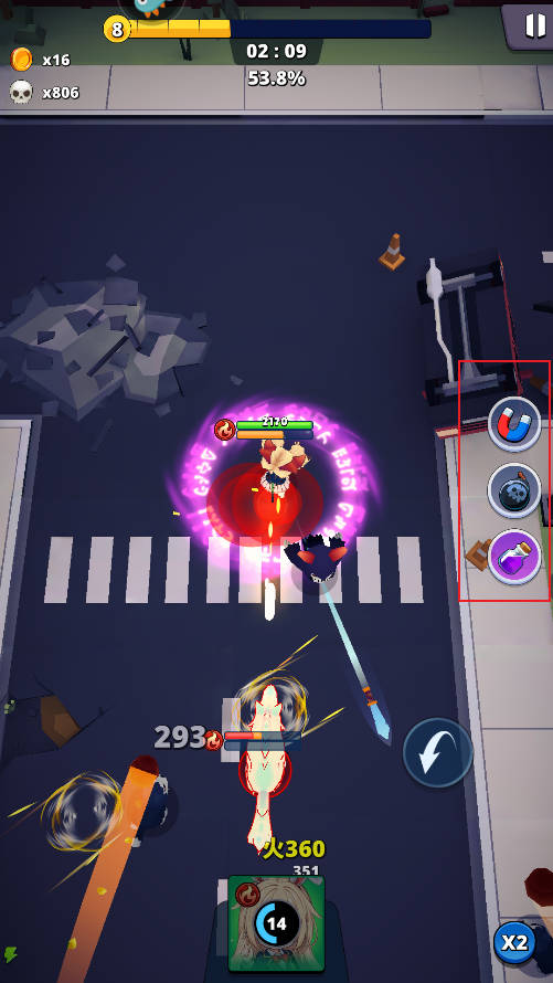 6、敌人过于强大的时候咱们得合理使用右侧的道具。