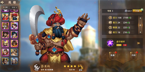 功能型英雄:例如张骞、秦琼、穆桂英这类,有着辅助队友的能力,获得一个军团buff的角色也是非常值得培养的;