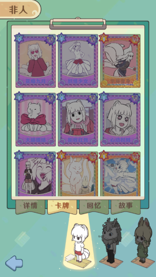 新增的卡牌玩法让战斗更具策略性,玩家可以收集不同卡牌,搭配技能挑战更强的角色。游戏还有角色详情、回忆录等板块,满足粉丝对角色故事的需求。作为非人哉的粉丝,我觉得这款游戏不仅还原了动画角色,还加入了丰富的剧情和创新玩法,适合休闲娱乐。虽然没有复杂的操作,但游戏内容丰富,尤其是对非人哉 fans来说,吸引力十足。公测时间已定,9月24日上线,感兴趣的玩家可以提前下载体验!