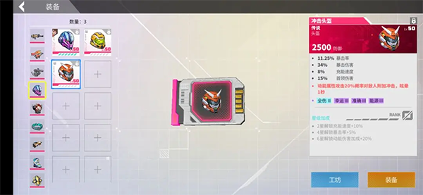 3、头盔选择冲刺头盔,延长冲刺无敌时间1秒,搭配劳拉的多段位移和高移速,能很快逃离危险区域。