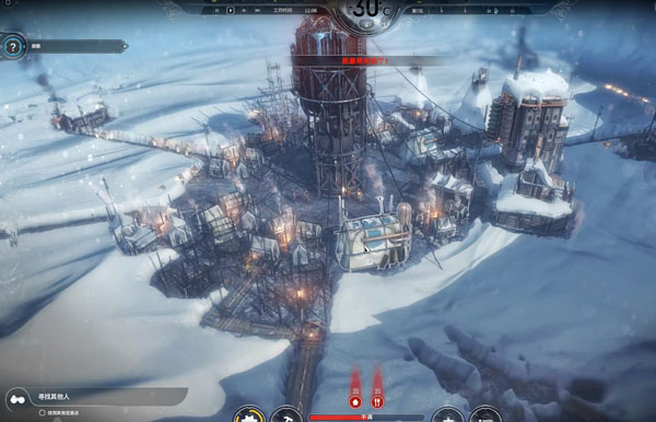 注意锤子图标旁的箭头所示的道路图标,在雪地中修建道路可以让工人更快的赶到工作地点。