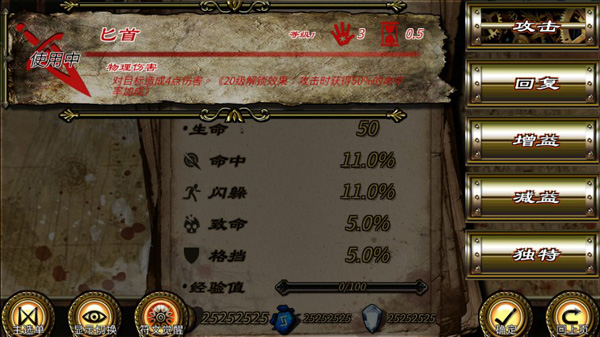 游戏中有多种装备和技能搭配选择,护甲提供能量保护,纱布持续恢复血量,匕首是主要武器。增益技能最多只能带三个,推荐选择闪躲、武器学等核心增益。减益技能则针对特定敌人设计,比如鬼火系列需要牵制技能,哥布林则适合破防技能。