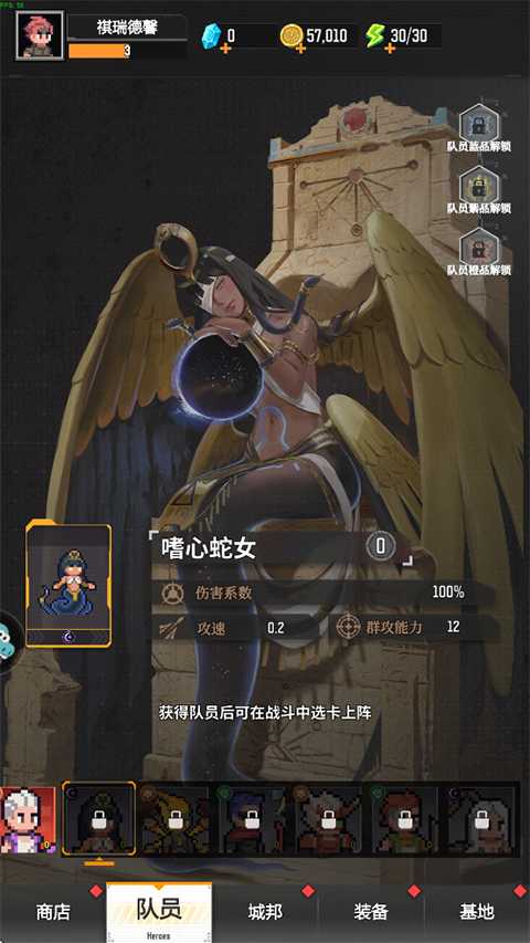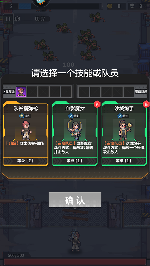1、进入游戏,点击选择一个技能或队员,辅助你击败来势汹汹的怪物;
