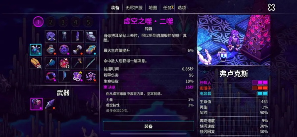 3.装备分套装切换,可以预设五个,目前我就知道流血套(匕首)电击套(手套,电击和叠加攻速)虚空套(锤子,吸血和减免伤害)