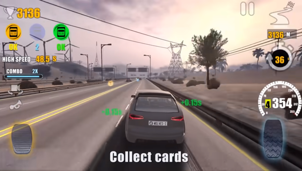 3、在游戏中,加速是关键,尤其在空旷路段保持高速行驶,不仅能节省时间,还能获得额外加分。当速度达到100km/h或以上,与其他车辆擦肩而过时会有额外奖励,但若减速则需重新计分。