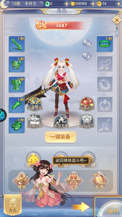5、点击角色可以看到当前角色属性、穿戴装备等信息