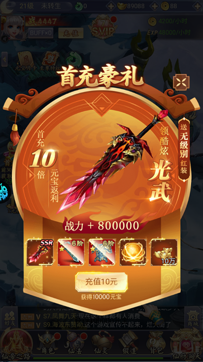 游戏的画面也很唯美,国风仙侠的韵味扑面而来。丰富的玩法设定、完善的社交系统和多样的福利活动,都让我觉得这个游戏值得一试。尤其是对新手特别友好,上线就能送满级 VIP10 奖励,首充还能获得光武和红装,简直太划算了!
