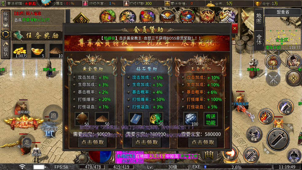 4、二大陆每个地图都会存在一些专属B0SS,建议追出来 项链(吸血)武器(吸血)再下三大陆,多余的金币可以点炼体,点满以后获得大量吸血性,在有一定装备后再试着去挑战沧澜王