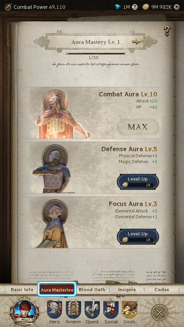 1、点击君主头像,可进入光环精通模块,通过选择攻击、防御或元素属性增强战力。