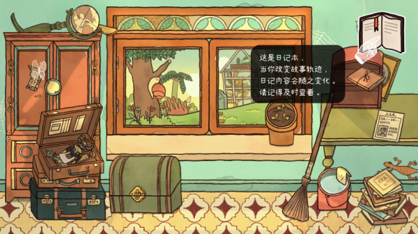 3、右上角是“日记本”,当玩家改变故事轨迹时,日记内容会随之变化;