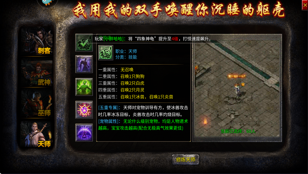破天刀传奇是一款全新版本的真四职业传奇手游,玩家可以从刺客、武神、巫师、天师四个职业中任选其一开局,不同职业将给你带来不同的游戏体验!破天刀游戏在玩法全面进化,还设有满满的福利活动,无论是新玩家还是老玩家,都能在这片热血江湖中找到属于自己的激情与快乐!