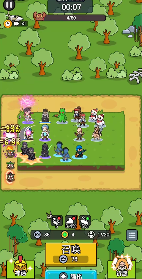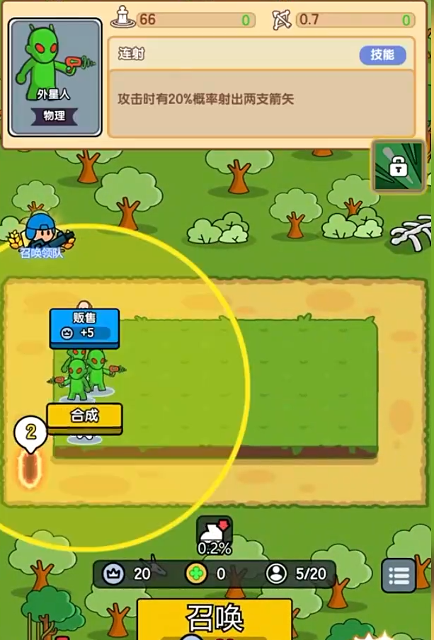 2、战斗初期需要召唤英雄角色,布置你的防御阵容。