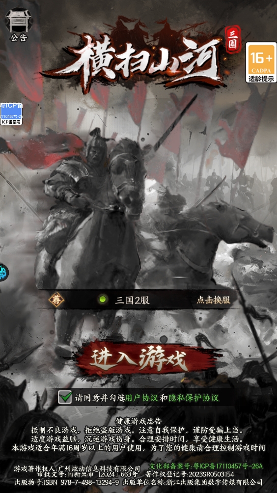 横扫山河折扣服是一款以三国时代为背景的卡牌策略回合制手游,此版本玩家享受0.1福利,648礼包仅需6.48元!游戏中玩家将扮演一位乱世主公,招募名将、培养军队、制定战术,体验真实的三国征战。游戏融合了武将收集、策略布阵、军团争霸等玩法,结合超值福利活动,让玩家轻松打造属于自己的无敌之师!
