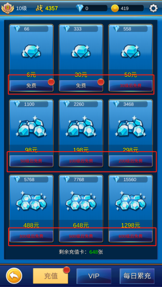 3、即可进行免费氪金。达到一定的等级要求即可解锁更高级的氪金