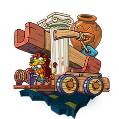 一辆来自古罗马的攻城车,攻城车僵尸向它的视野内最近的植物发射一个爆炸的花瓶。