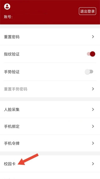 2、进入“我的”界面后,点击校园卡即可进入校园功能模块