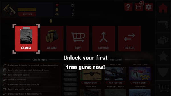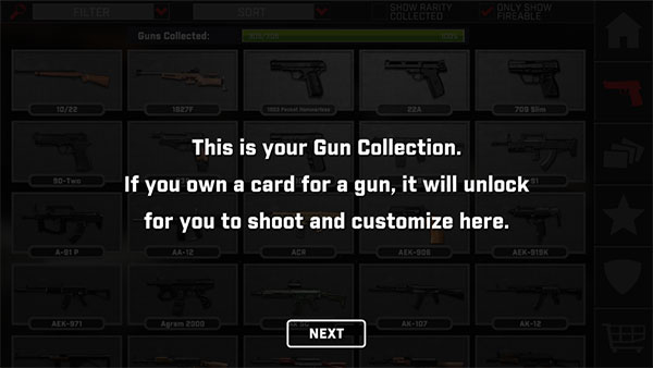 1、从本站下载真实枪械2官方最新版,进入游戏开始有新手教程,使用卡片即可解锁目标枪支。