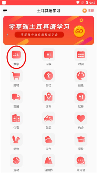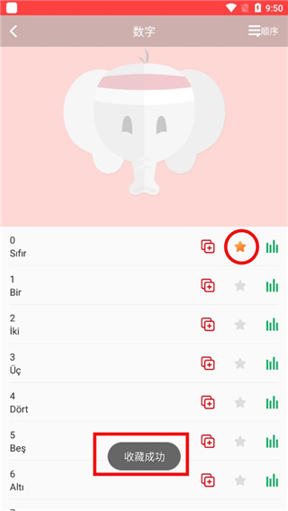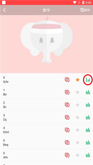 6、进入后可以看到这是土耳其语数字的学习,选择单词后面的小红框是复制功能,这样你就将这个单词复制下来了;