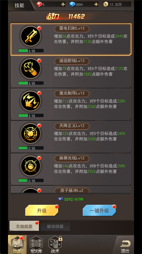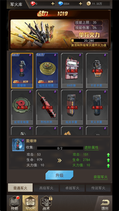 军火库中有许多强力武器,玩家激活后可进行升级,进一步增加战力。