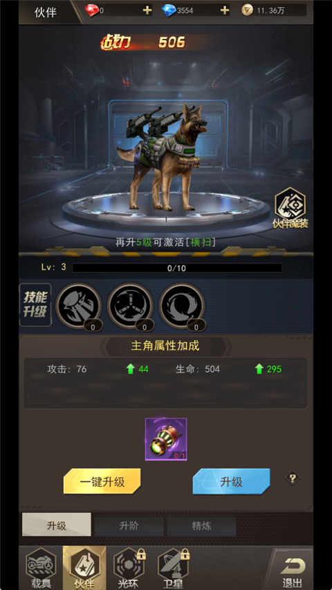 玩家的载具可以进行升级和升阶,后续还可激发愈合等技能,在战斗中可以提供强大支持。