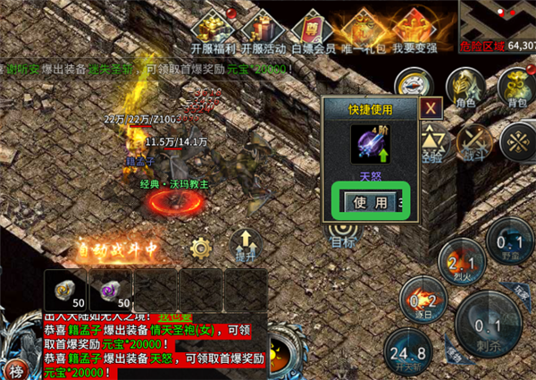 4、打怪过程中,会随机掉落装备等物品,点击使用即可穿戴。