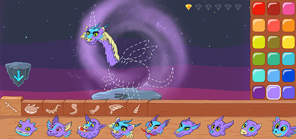 6、来到加油站,你可以为体力不足的小龙们补充能量,只需将龙拖动到同颜色的石头上即可。