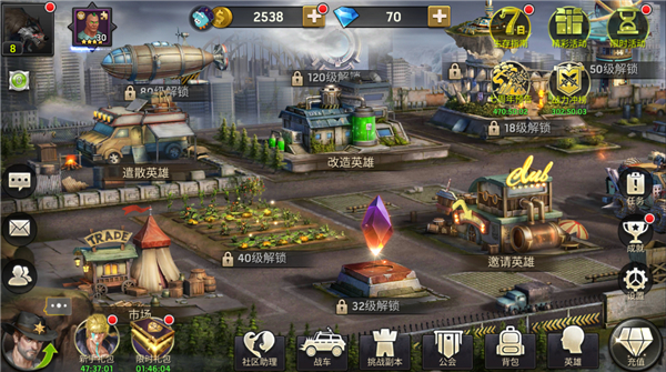 明日地平线手游还有模拟经营元素玩法,你将在这里建造生产类、增产类、荣耀类、探险类研究所,它们可以为你生产金币、钻石、石油等物资,助力更好的培养角色!