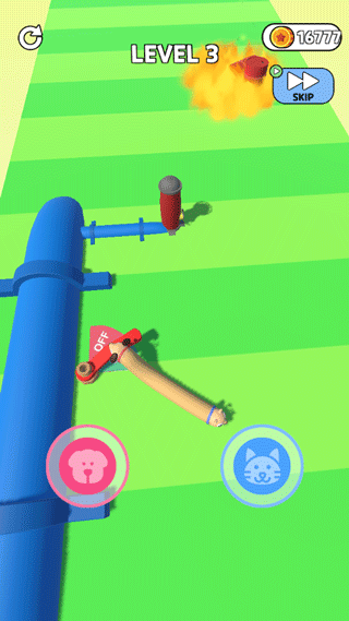 1、游戏需要控制连接在一起的猫头和狗头,完成每一个奇特的关卡。