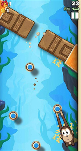 1、弹射、反弹、甩动猴子,向着胜利曙光迈进。2、沿途一定当心各种恶毒的陷阱和障碍。