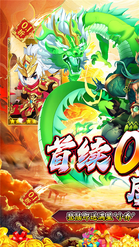 从版本亮点来看,该游戏最大的特色就是超值的充值折扣和丰富的登录奖励。首次充值0.1折的优惠政策不仅降低了玩家的准入门槛,还提供了极具吸引力的元宝返还机制。特别是连续登录赠送VIP9、满星神将小乔、5星神装等福利,让新人玩家也能迅速提升战斗力。